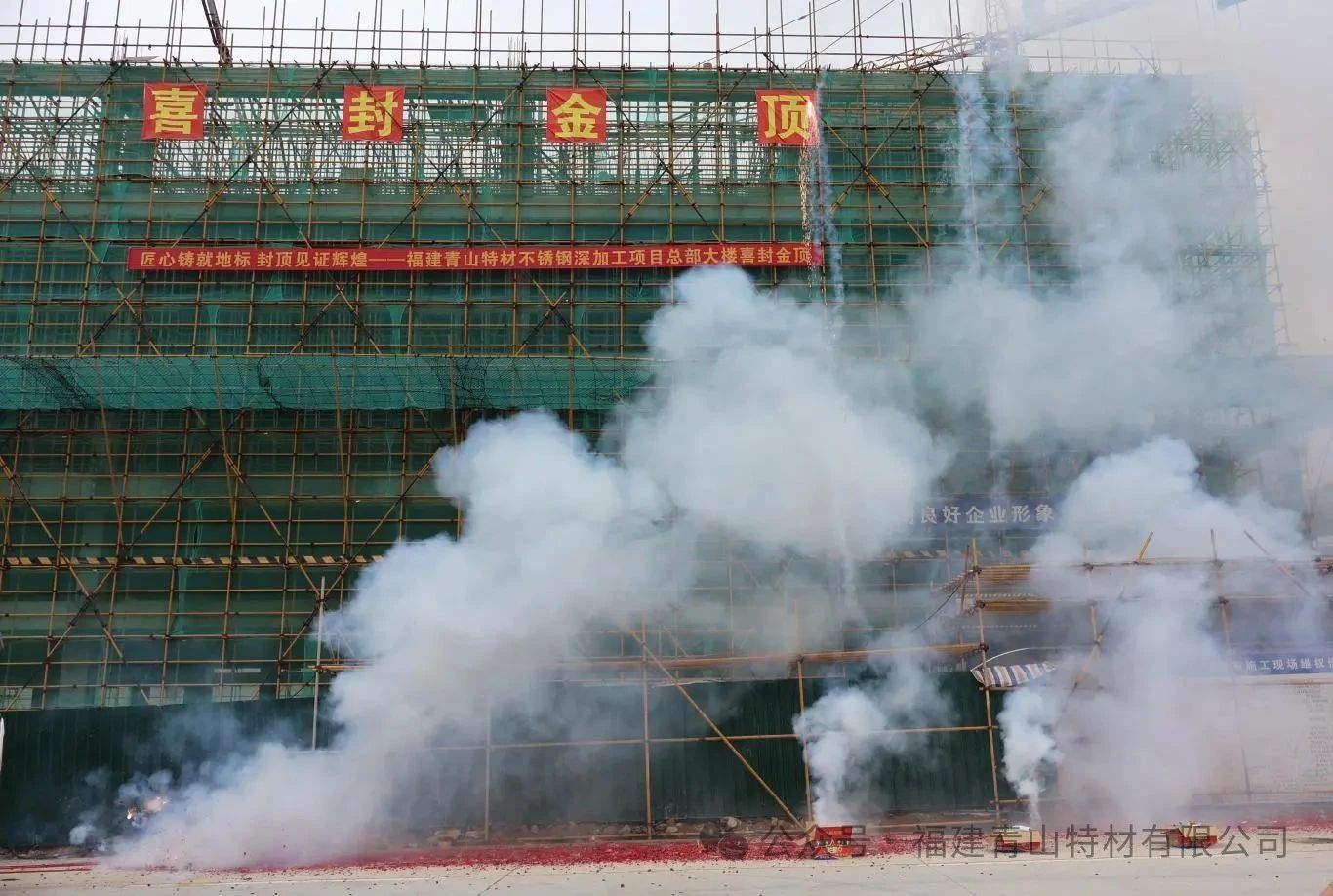6月11日上午7時39分,隨著最后一方混凝土澆筑到位,福建青山特材不銹鋼深加工項目總部大樓順利完成主體結構封頂,標志著項目建設取得階段性重大勝利。福建青山特材有限公司副總經(jīng)理鄭浩、無縫管事業(yè)部總經(jīng)理陳光森、青山鋼管有限公司福建分公司總經(jīng)理蔡勇強等一行領導親臨現(xiàn)場,共同揮鏟完成最后澆筑。